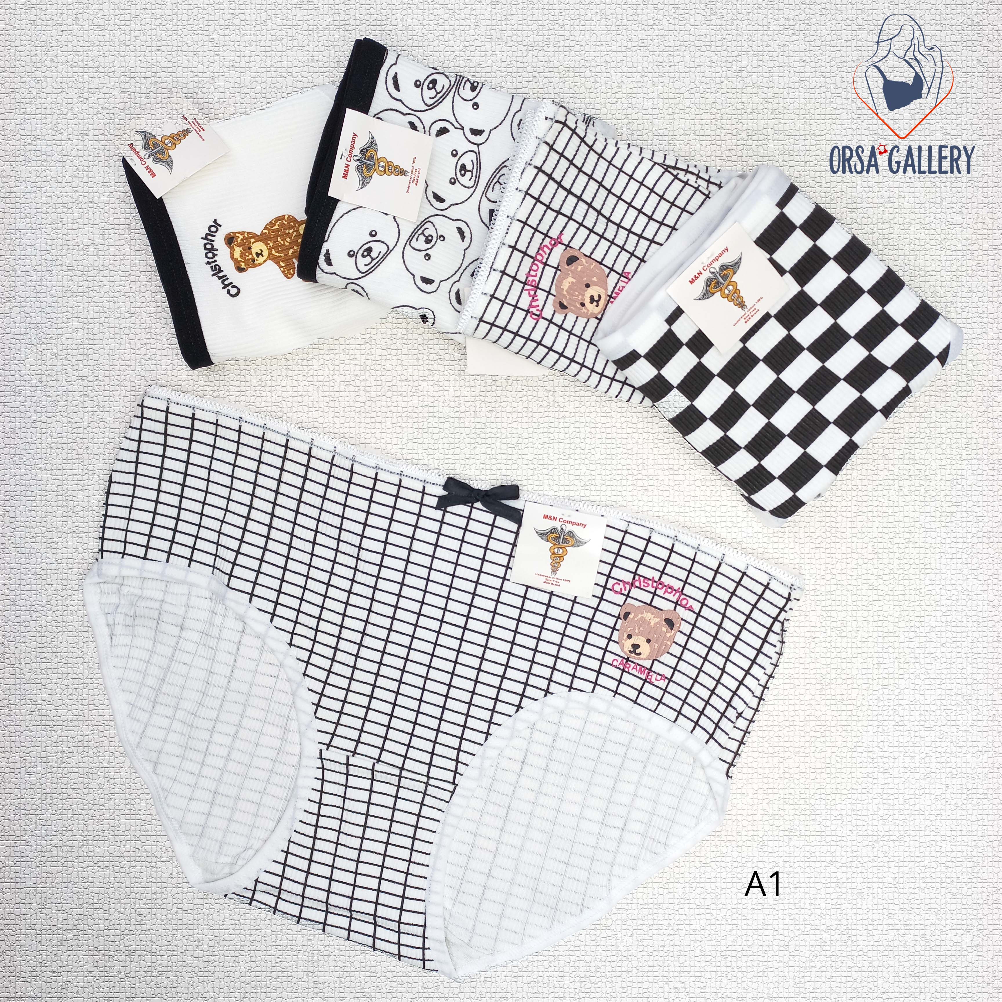 شورت زنانه فانتزی نخی خرسی سیاه سفید