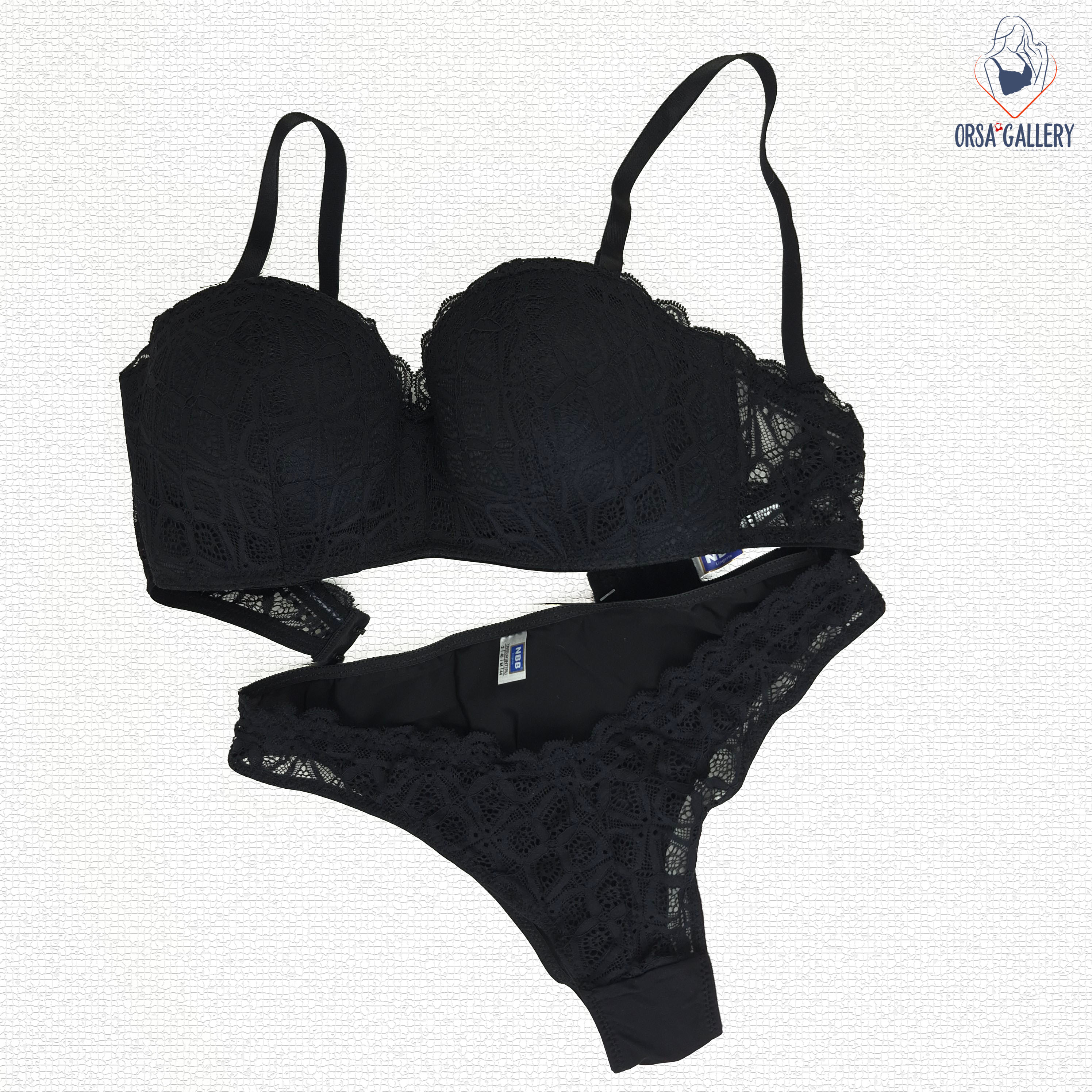 ست شورت و سوتین تمام گیپور کد 4848 مشکی برند ان بی بی / NBB